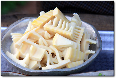 이 때가 아니면 맛볼 수 없는 죽순도 옷을 벗고 부끄럽게 속살을 드러낸다.