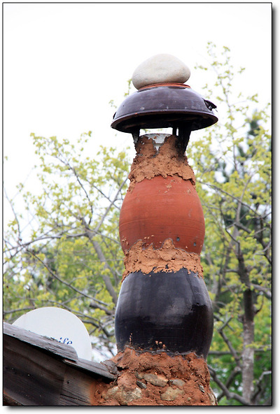 짝을 잃은 항아리 두껑은 굴뚝 지붕으로 화려한 변신을 마쳤다.