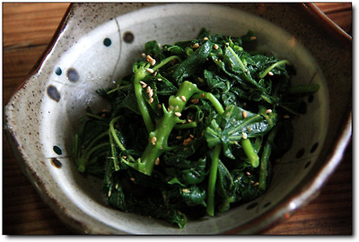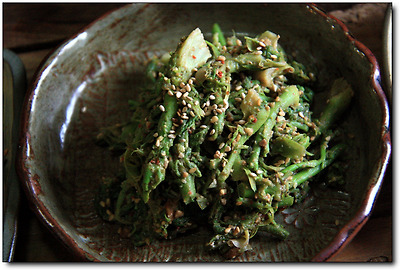 연하고 부드러운 새순으로 우리가 직접 골라서 한소쿠리 장만했다.