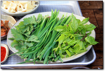 제 몸 잘라내어 식탁으로 스스로 올라가 자세를 잡는 "방풍나물"도 향취를 더한다.