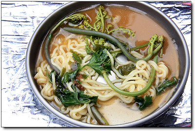 생전 처음 맡아 보는 오묘한 스멜의 산채라면!