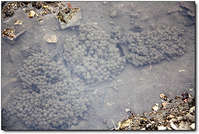 고인 물 속에는 개구리들이 푸짐한 2세를 만들어 두었다.