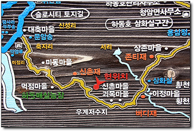 여기 신촌마을의 분기점은 12코스 전체 거리 16.9km중에서 6.9km지점.