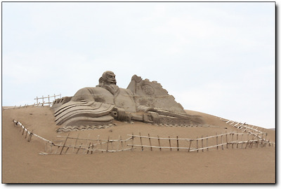 곳곳에 이름난 작가들을 불러 모아 모래 작품을 만들었다. 누란 왕국과 선선의 상징들을 살리고 지역의 역사들을 재현했다. 중국, 이제 그들은 사막의 모래마저 자원으로 탈바꿈하고 있는 중. 방대한 대륙 곳곳에 비축된 그들의 재산이 부러울 뿐이다.