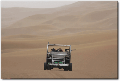 신기하게도 지프차는 모래 위를 엄청난 속도로 달린다.