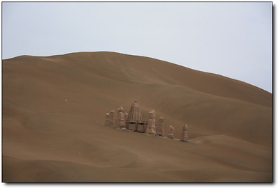 하지만 입속에는 김밥 한 줄을 먹은 것보다 더 많은 모래가 쌓였다. 저녁 밥은 안먹어도 될 만큼 배는 더부룩.... 최근에 밝혀진 사실에 의하면 돈항 박물관에 전시되어 있는 3800년 전의 미이라인 일명 '누란 공주"의 폐속에 다량의 모래먼지가 쌓여 있어서 그게 40세의 이른 나이에 요절한 원인일 수 있다는데... 그렇다면....헉~!