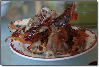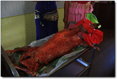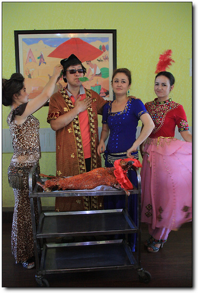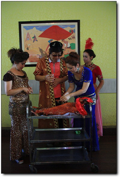 오늘 자진 납세하신 "미스터 양고기"님, 온전히 출세하셨다. 한 명도 아닌 세명이나 되는 위구르 미녀들의 술시중을 받으며 홀로 독야청청 중이시다. 멀리서는 옆지기 님의 송곳같은 시선이 온몸으로 날아들고...