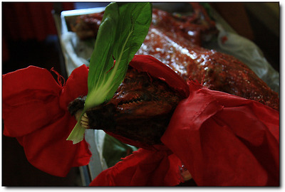 우리나라에서 고사를 지낼 때, 돼지머리의 구석구석에 지금의 모습처럼 뭔가를 잔뜩 꼽는 모습이 자꾸만 떠오르는 것은... 이러면 결례인데...