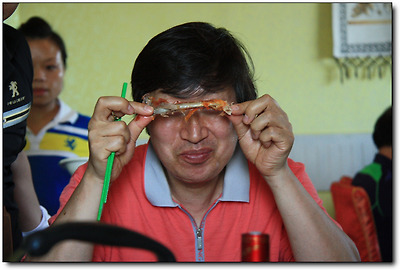 마주친 미인의 눈길과 손맛에 금세 입이 귓볼까지 올라가신다. 안방마님이 두 눈 부릅뜨고 있는 서슬 시퍼런 현장에서 이렇듯 내놓고 외간 여인들의 서빙을 받아 본 남정네들이 이 땅에 과연 몇이나 될까.... 님은 지금 아슬아슬한 외줄을 타고 있다는 사실, 알고 계시죠? ㅋㅋ 이러한 상황을 예측이나 하신듯 미리 선글라스를 착용한 그 현명함이 놀랍다.
