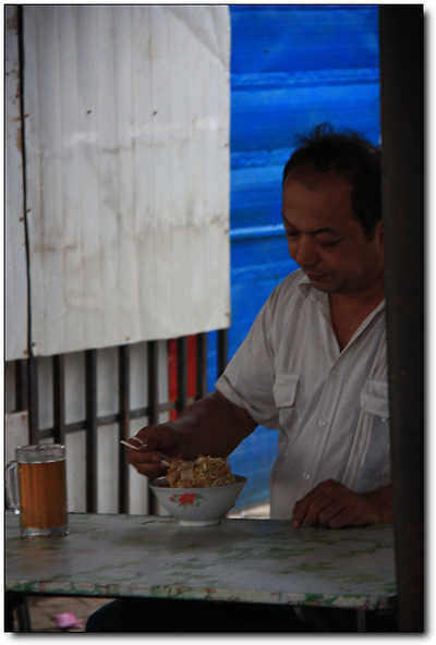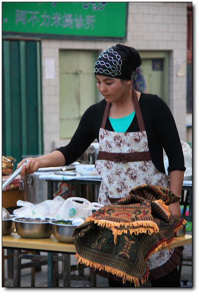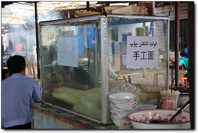 또 다른 위구르인의 전통 국수, 빤면(拌麵)을 만들고 있는 위구르 여인.