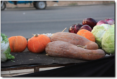 흑수정 처럼 빛나는 흑자두, 벌써 노랗게 익은 호박, 터질듯한 몸매의 양배추,