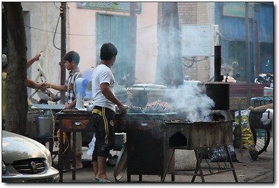 여기저기서 양꼬치인 "양러우찬(羊肉串)"익는 냄새, 이젠 익숙하다.