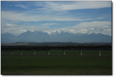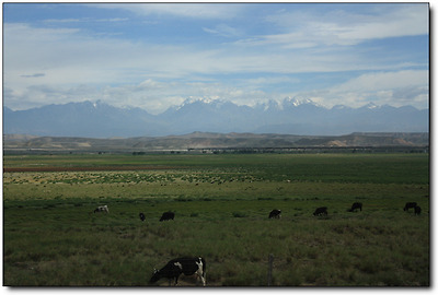 모처럼 펼쳐진 초원 위로 만년설을 이고 있는 천산산맥이 병풍을 둘렀다.