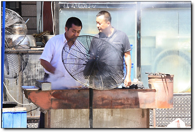 바로 노점의 수동식 환풍기가 만들어내는 양꼬치 냄새였던 것!