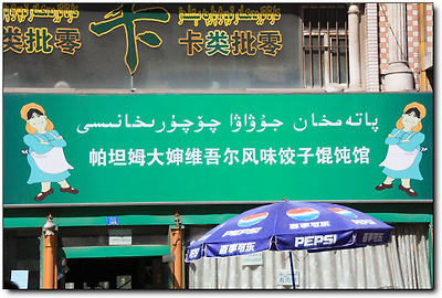 이곳은 어딜가나 간판에 중국어와 이슬람어가 함께 쓰여져 있다.