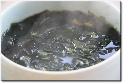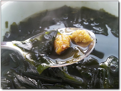 바깥 날씨가 추워서인지 뜨끈한 성게미역국이 반갑다.