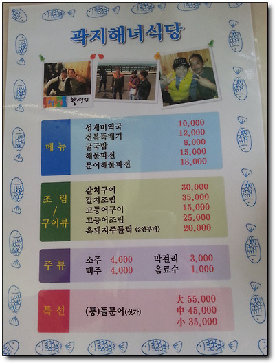 메뉴판을 펼치니 1박 2일 출연당시의 사진이 가장 먼저 눈에 띈다.