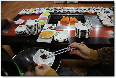 차곡 차곡 쌓여 있는 접시들만이 좀 전에 어떤 풍경이 펼쳐져 있었는지 대변할 뿐이다.