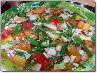 물김치의 주재료인 무와 피망을 누르고 물김치를 점령한 사과, 귤, 감 트리오!!