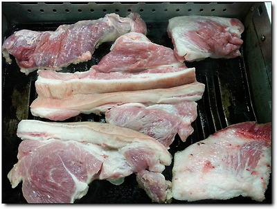 두툼한 삼겹살은 야외에서 숯불에 구워먹어도 손색이 없을 정도다!