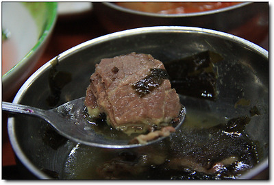 질좋은 한우 고기를 넣어 끓인 탓인지, 미역국이 얼마나 진하고 맛있는지...