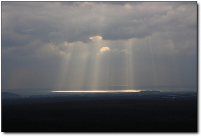 저 멀리 바닷가엔 오묘한 빛내림 현상마저...