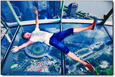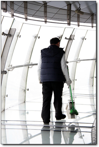 "여기까지 왔는데..." 하는 마인드로 두발을 성큼 유리바닥 위에 올려놓고 보니