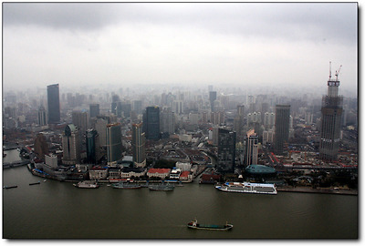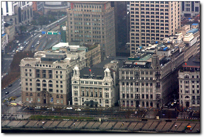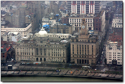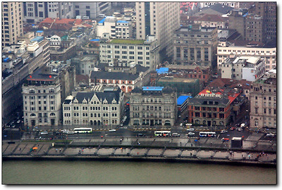 유람선들이 줄 서 있는 강 저쪽 편이 바로 "외탄" 지역. 19세기, 서구 열강들의 계속되는 개방 요구에 중국은 할 수 없이 문호를 개방하는데, 그 때 미국과 프랑스 등의 나라들이 앞다투어 들어와 영사관을 짓고, 중국을 본격적으로 강탈하기 시작했던 곳이 이곳 "외탄" 이다. 그래서 중국 입장에서 보면 역사적 아픔이 서려 있는 곳.