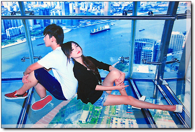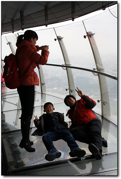 동방명주탑 전망대 안에, 인증샷 모범 사례 사진이 걸려 있는데,