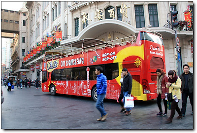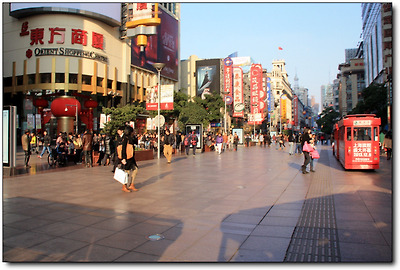 인민광장에서 외탄까지 이어지는 남경로는 총길이가 5km인데, 인민공원을 기준으로 동과 서로 나뉜다. 남경서로는 중국 전통 공예품과 차를 파는 거리이고, 내가 주로 걸었던 남경동로는 백화점거리.