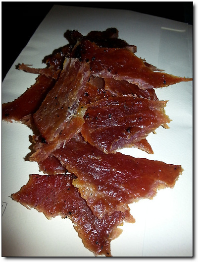 별 기대 없이 시식용 육포를 하나 집어 먹어봤는데...