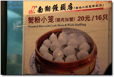 게살과 돼지고기로 속을 채운 만두가 16개에 20원위엔.