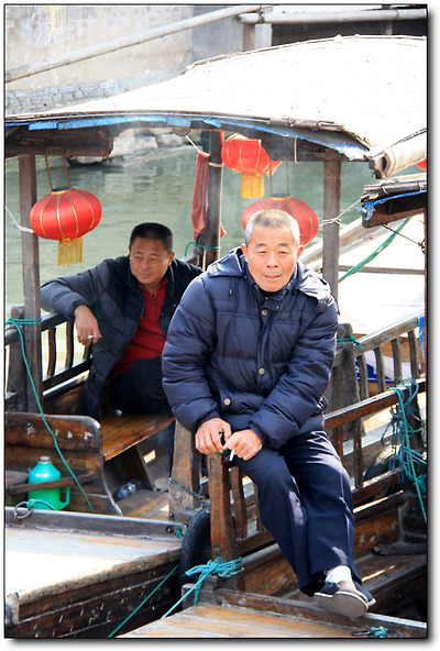 손님들을 기다리고 있는 뱃사공이라고 하기엔 너무나 여유로운 아저씨들.