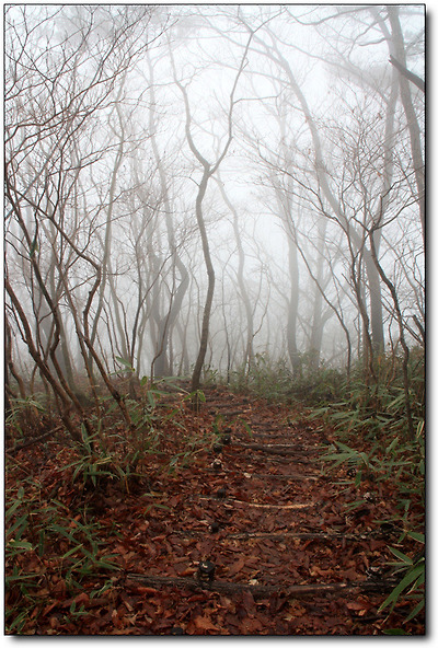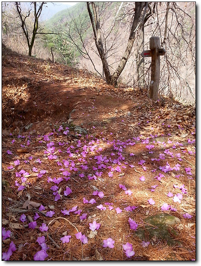 계단길에 쌓인 지난 가을의 낙엽들은 쉴 새없이 산객의 발걸음을 위협한다.