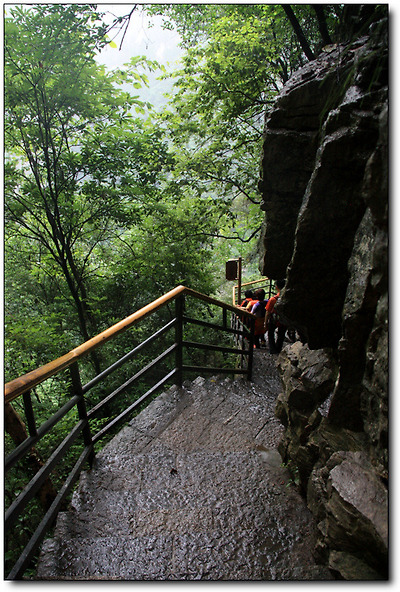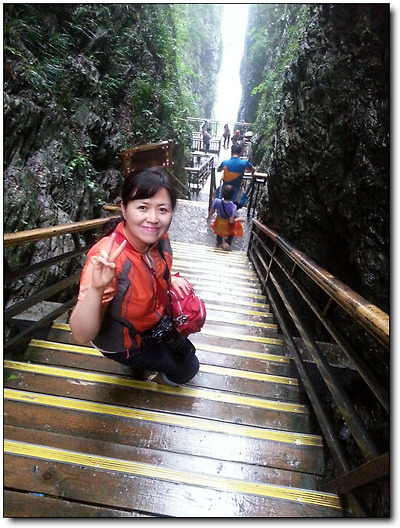70~80도를 가늠케하는 수직 계단, 산객들의 발자국에 닳고 계절에 관계없이 흩부리는 빗줄기로