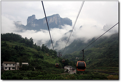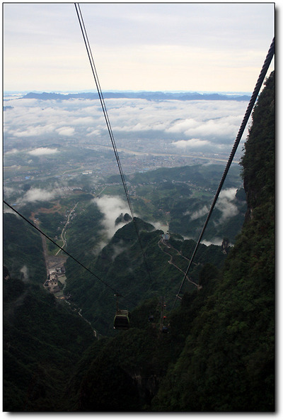 시내에서 천문산 전망대까지 케이블카를 타고 오르는 거리는 총 7,450m!