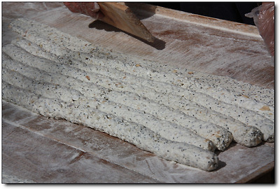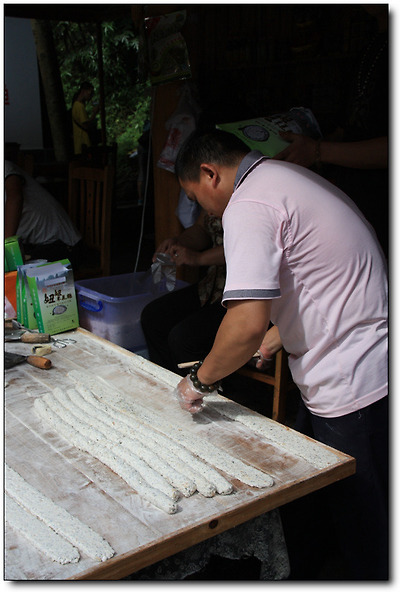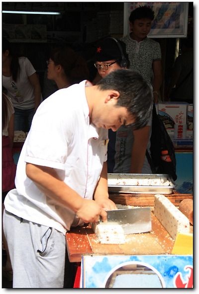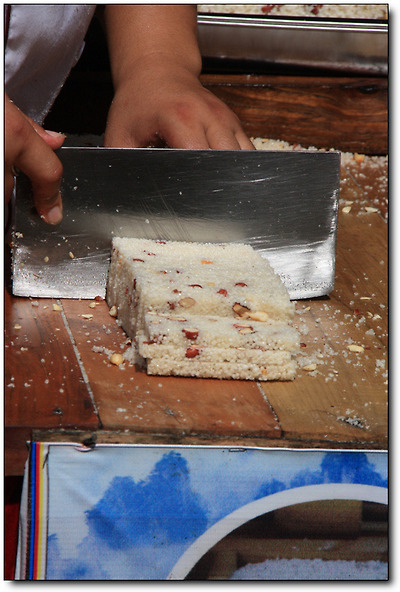 말랑한 떡을 써는데 너무 큰 칼로 쓰는게 아닌가 싶어 가까이 다가가봤더니,