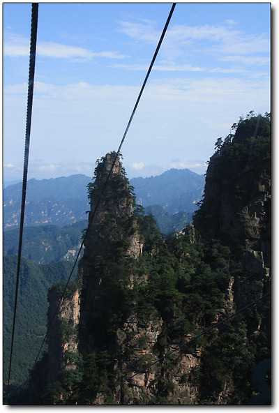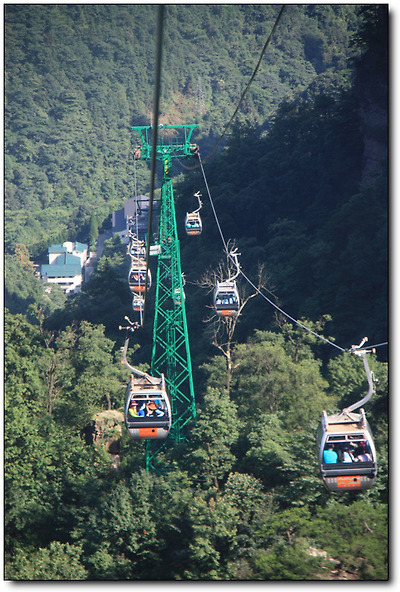 천자산 케이블카는 출발점과 도착점 간의 표고차이가 700m에 이른다.