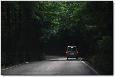 케이블카가 우리를 내려 놓은 곳은 숲이 우거지고 뜻 밖의 아스팔트가 놓여 있지만