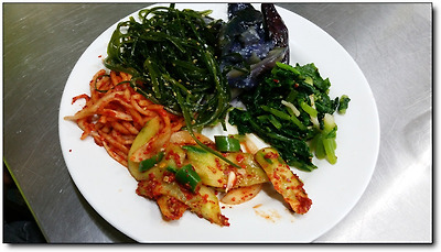 밤에 술 손님들에게는 곁접시로 이렇게 입맛에 맞게 반찬을 골라 마음껏 드시란다.