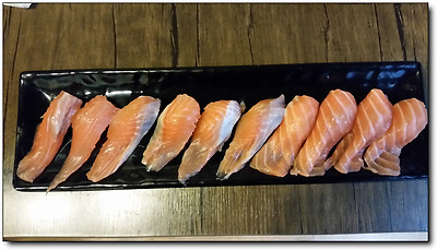 이번에는 그 모양도 맛깔스러운 연어 초밥이다.