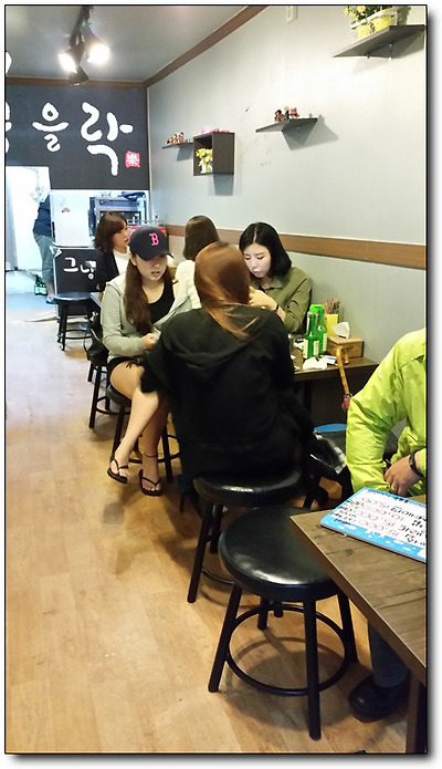 이어서 두번 째 판도 다소곳이 들어와서 취객들 곁에 앉았다.