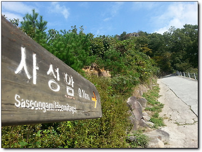 천인단애의 바위골목을 휘감아 한 허리를 돌아가니 나타나는