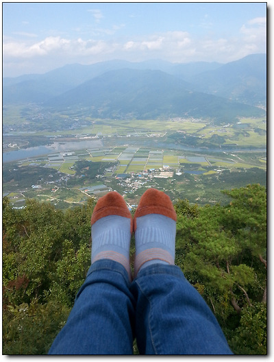 산아래로 굉장하게 펼쳐진 굉장한 광경에 떨어진 턱을 부여잡고