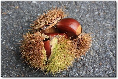 밤송이 하나가 미리 아스팔트 도로 위까지 마중을 나왔다.