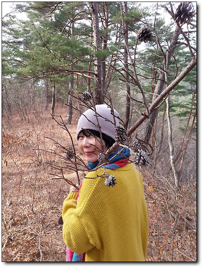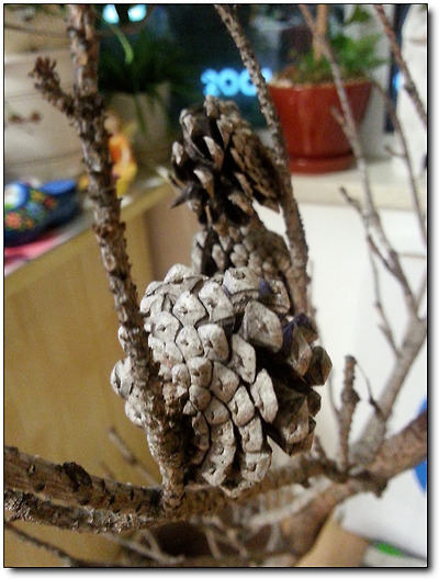 솔방울 주렁주렁 달린 소나무 가지를 줍더니