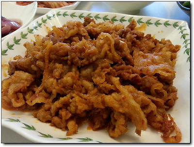 쌈과 함께 싸 먹을 수 있는 고기가 매콤한 양념옷을 입고 대기 중~!