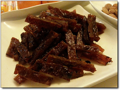 큰 육포를 불에 살짝 구워 가위로 잘라서 먹기 좋게 내어주셨는데,