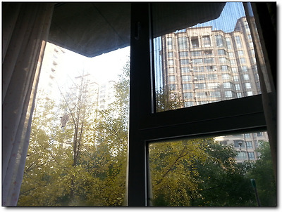 다음 날 아침 눈을 떴을 때 창밖으로 보인 풍경.