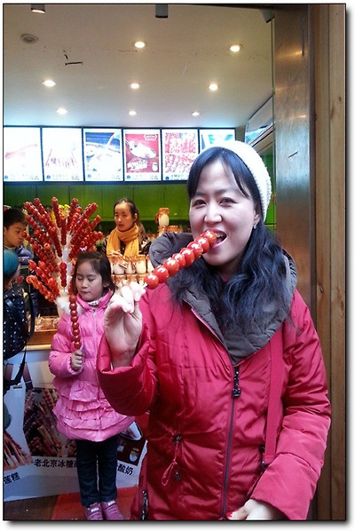 붉은색 과일을 꼬지처럼 꽂아 팔고 있는 이 것도 한번 사봤다.
